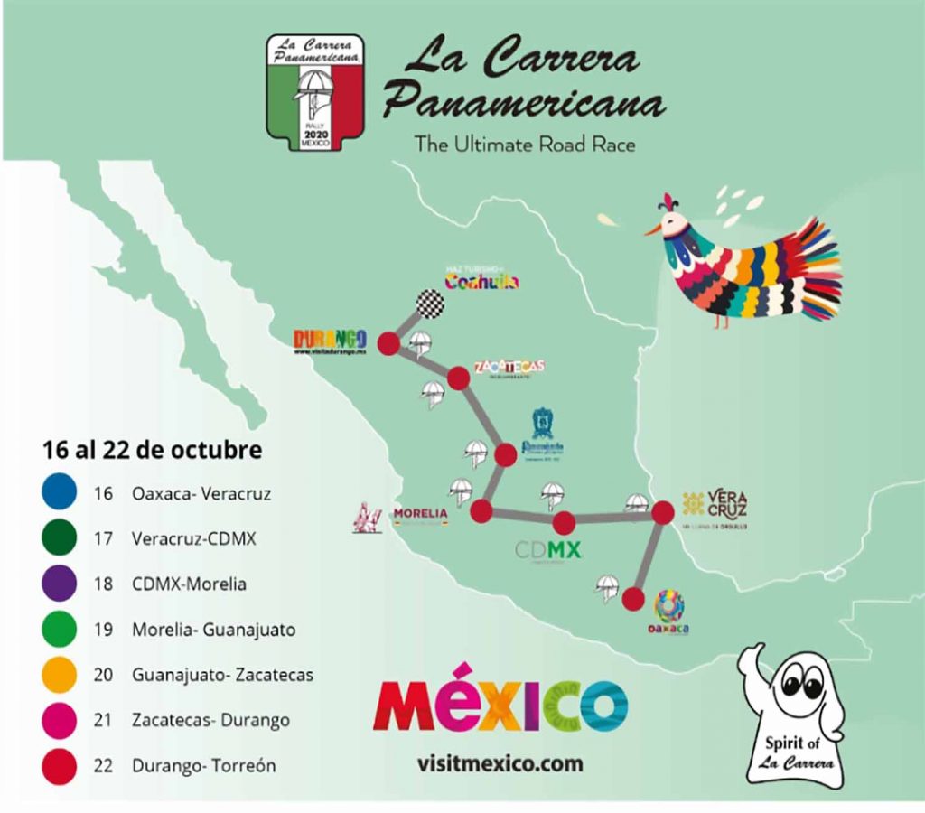 El Comité Organizador de La Carrera Panamericana anuncia oficialmente la ruta para la edición No. 33 de su época moderna, la cual se llevará a cabo del 16 al 22 de octubre de 2020, donde celebrará el 70 Aniversario del primer banderazo en 1950.